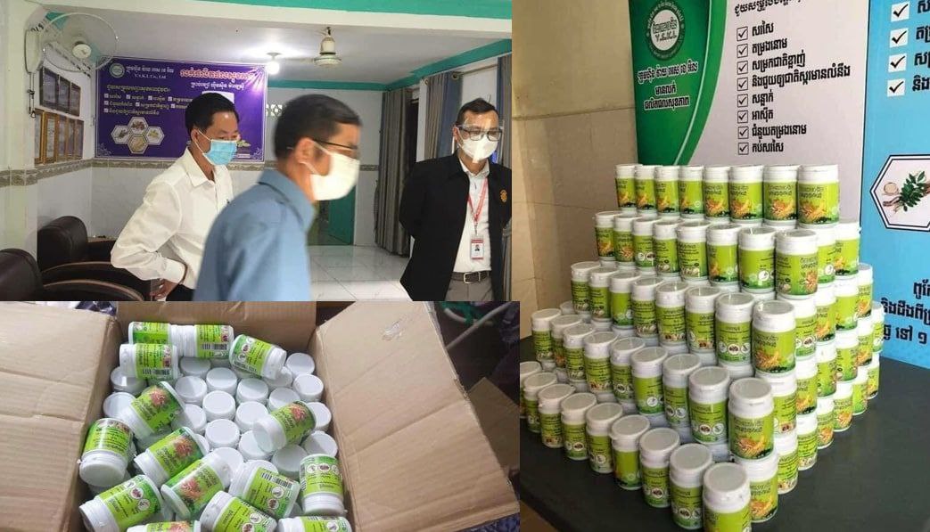 (ភ្នំពេញ)៖កាលពីថ្ងៃទី២៣ ខែកក្ដដា ឆ្នាំ២០២១នាយកដ្ឋានឱសថ ចំណីអាហារ បរិក្ខាពេទ្យនិងគ្រឿងសម្អាង ដឹកនាំដោយលោកឱសថការី ហួត សេងថុង អនុប្រធាននាយកដ្ឋាន ដោយមានការសម្របសម្រួលដោយលោក ឆាយ ហុង ព្រះរាជអាជ្ញារង អមសាលាដំបូងរាជធានីភ្នំពេញ បានធ្វើការចុះត្រួតពិនិត្យនិងឆែកឆេរទីតាំងលក់ឱសថគ្រាប់ម្សៅយិនស៊ិន ដែលមានទីតាំងស្ថិតនៅផ្ទះលេខៈ២I ផ្លូវ២៦៥ ភូមិ១៣ សង្កាត់ទឹកល្អក់៣ ខណ្ឌទួលគោក និងផ្ទះលេខៈ២៣១៣ភូមិក សង្កាត់ច្រាំងចំរេះទី២ ខណ្ឌឬស្សីកែវ រាជធានីភ្នំពេញ។
