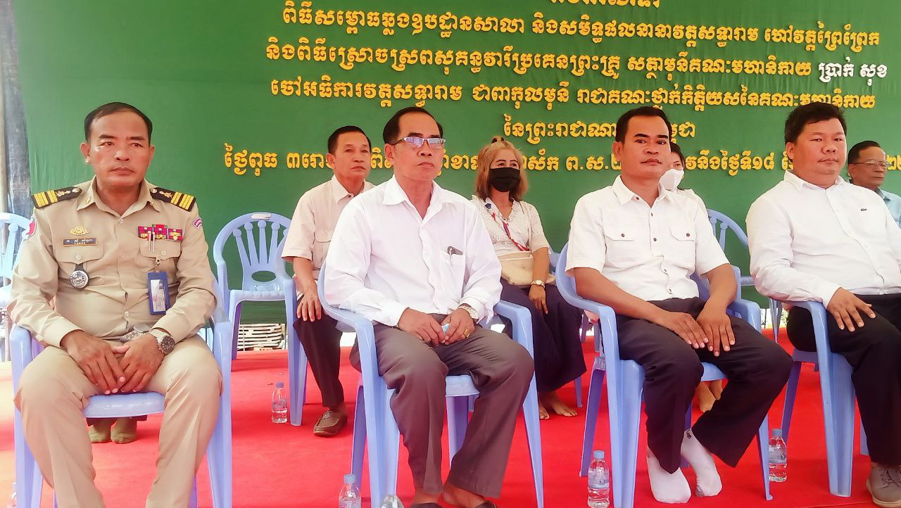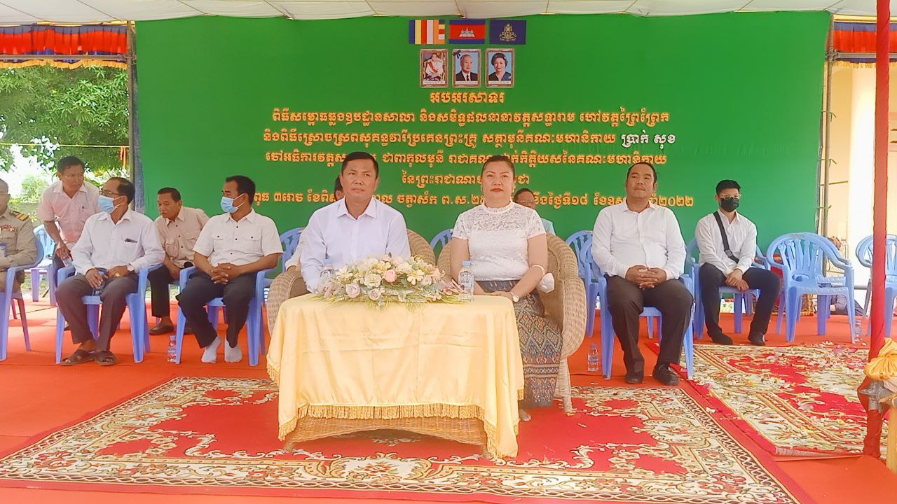 (ខេត្តស្វាយរៀង)÷ ឯកឧត្តម អេង ហ៊ី ស្នងការ នៃស្នងការដ្ឋានទំនាក់ទំនងកិច្ចការសាធារណៈ កងរាជអាវុធហត្ថលើផ្ទៃប្រទេស អនុប្រធានក្រុមការងារចុះជួយស្រុករមាសហែក និងជាប្រធានក្រុមការងារចុះជួយមូលដ្ឋានឃុំម្រាម នាព្រឹកថ្ងៃទី១៨ ខែឧសភា ឆ្នាំ ២០២២នេះ បានអញ្ជើញជាអធិបតីក្នុងពិធីសម្ពោធឆ្លងឧបដ្ឋានសាលា និងសមិទ្ធិផលនានា នៅវត្ដសទ្ធារាម (ហៅវត្តព្រៃព្រែក) ស្ថិតនៅភូមិព្រៃព្រែក ឃុំម្រាម ស្រុករមាសហែក ខេត្តស្វាយរៀង និងពិធីស្រោចស្រពសុគន្ធវារីប្រគេនព្រះគ្រូ សត្ថាមុន្នីគណៈមហានិកាយ ប្រាក់ សុខ ចៅអធិការវត្តសទ្ធារាម (ហៅវត្តព្រៃព្រែក)ផងដែរ ។